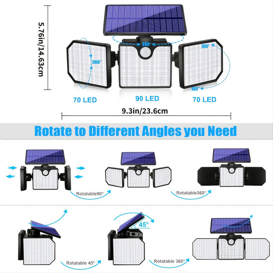1pc/2pcs 230 LED 2200LM Led Solar Motion Sensor Light, Outdoor 3 Adjustable Heads Security LED Flood Light