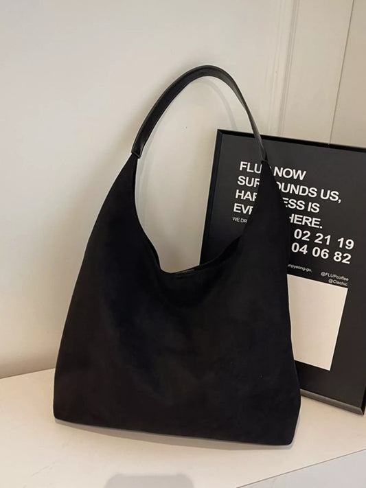 Solid Color Suede Tote Bag