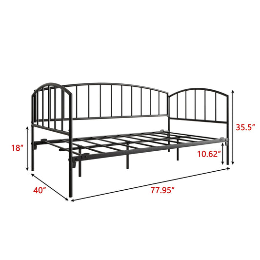 Metal Bed Frame Simple Vertical Bar Decoration Daybed Black Twin Easy to Assemble Stylish and Modern Bedroom Furniture [US-W]