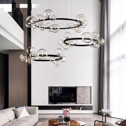 Modern Clear Glass Chandeliers Parlor Foyer Restaurant Hanglamp Bedroom Light Fixtures Silver Metal G9 110-240V Cord Adjustable