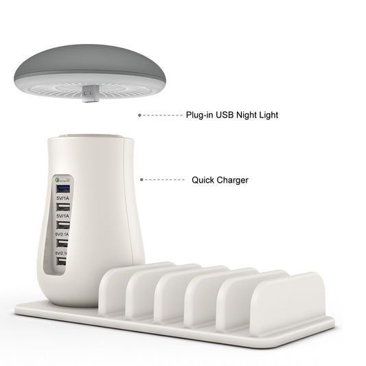 Multi Port Quick charger 3.0 Mushroom Lamp QC3.0 Charge for smart phone Led Lamp USB Charging Station Dock