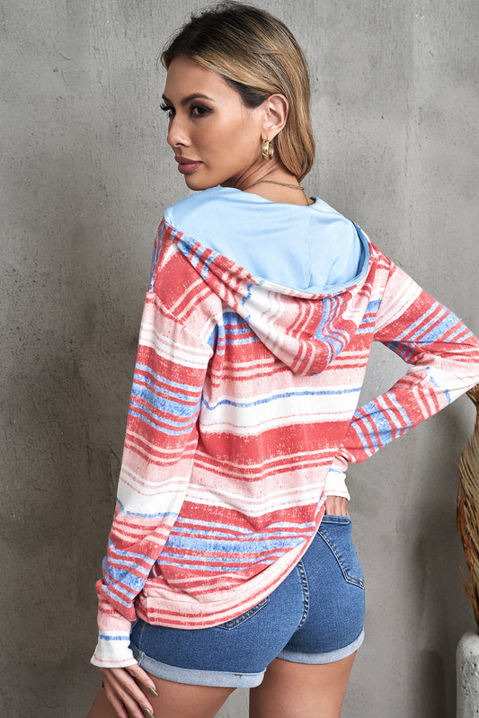 Multicolored Stripe Quarter Snap Fleece Sweatshirt