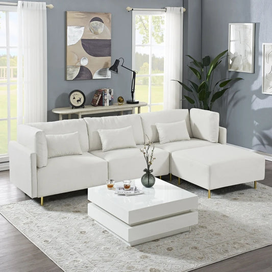 Modern Luxury Sectional Sofa Couch Quality Upholstery L Shape Sofa Golden Metal Leg with Convertible Ottoman Chaise
