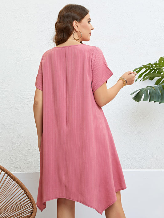 Plus Size Ruffled Round Neck Cap Sleeve Mini Dress