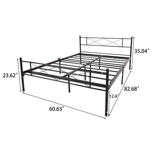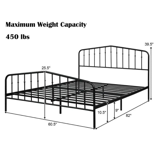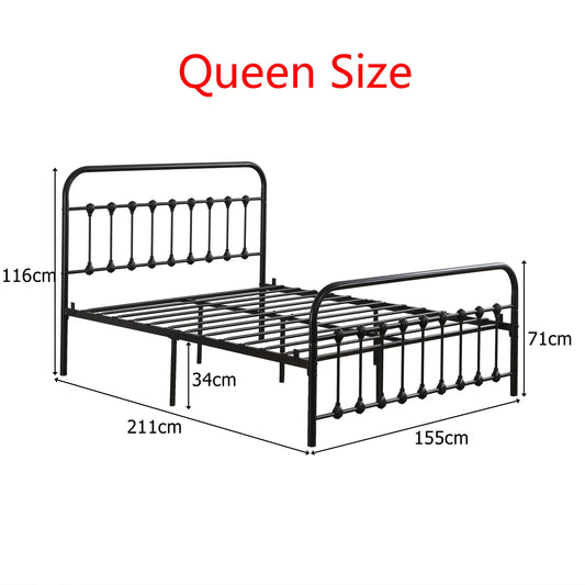 Queen Size Metal Bed Frame Mattress Foundation with Vintage Headboard and Footboard Bedroom Furniture