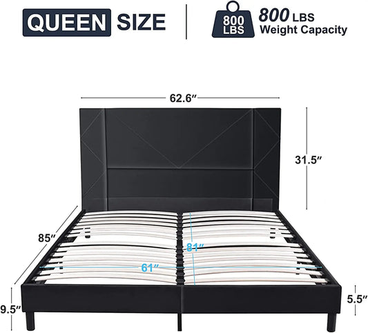 Queen/Full/Twin Bed Frame Velvet Upholstered Platform Bed with Headboard Mattress Foundation Strong Wood Slat Support[US-Stock]