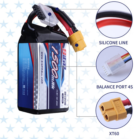 SIGP 4S Lipo Battery for 1100mAh 1300mAh 1500mAh 14.8V 120C Soft Pack with XT60 Plug RC FPV Drone Helicopter Airplane Quadcopter