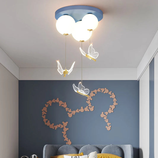 Simple And Modern Bedroom Lamp With Ball Butterfly Warm and Romantic Ceiling Lamp For Children's room Pendant light Indoor Light