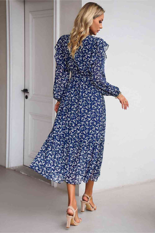 Surplice Neck Balloon Sleeve Midi Dress
