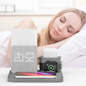 Wireless Charger 3 In 1 Fast Charging Station Digital Alarm Clock Night Light Compatible for IPhone 13 Iwatch/AirPods iPhone 14