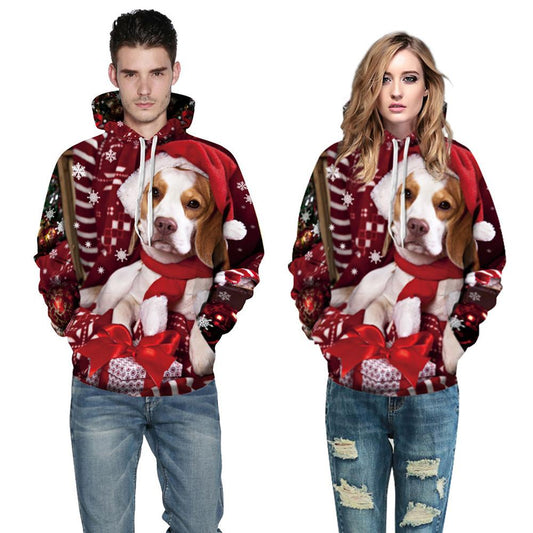 Women Men Christmas 3D Dog Print Sweatshirt Hoodies