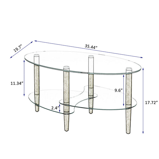 [Flash Sale]Transparent Oval Glass Coffee Table Modern Table In Living Room Oak Wood Leg Tea Table 3-Layer Glass Table[US-W]