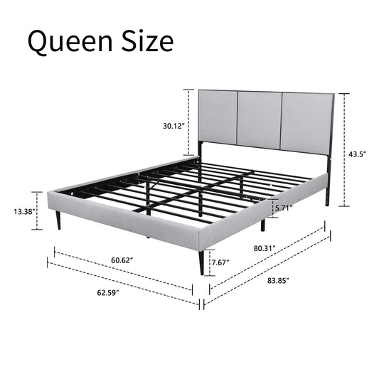 [Flash Sale]Queen/Full 2 Sizes Linen Platform Bed Modern Stylish Metal Slat Frame Light/Dark Grey[US-W]
