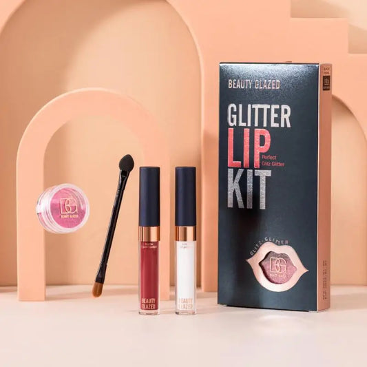 Glitter Lip Gloss Lipstick Shiny DIY Lip Gloss Diamond Waterproof Long Lasting Lipgloss Kit With Lip Primer Lip Tint Lips Makeup