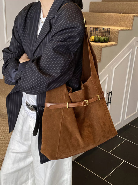 Solid Color Casual Suede Handbag