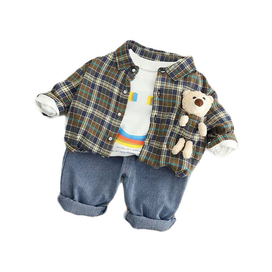 Boys Suit Casual New Trendy Children's Western Style Casual Plaid Three-Piece Korean Version Baby Handsome Plaid Shirt