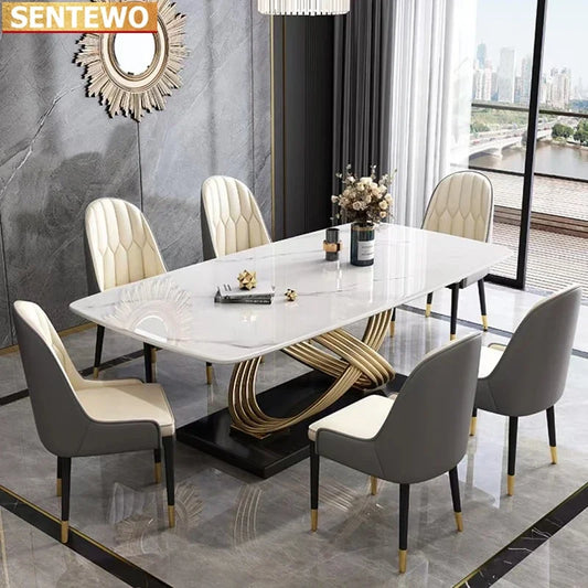 Free Shipping Marble Dining Room Tables Set 4 6 Chairs Ltalian Luxury Table Stainless Steel Gold Base Furniture Mesa Comedor