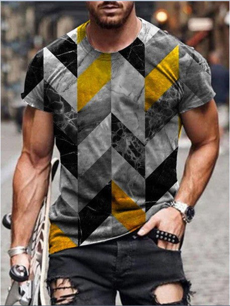 Men's Casual Round Neck Short Sleeve 3D Digital Printing Slim Pullover Men's T-Shirt