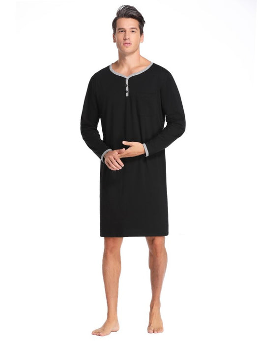 Men'S Long Sleeve Pajamas Button Henley Shirt Casual Cotton Knit Loose Fit Home Hospital