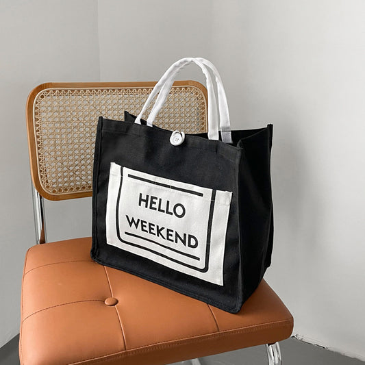 Retro Button Tote Bag New Canvas Letter Printing Tote Bag Large Capacity Fashion Simple Hand Carry Shopping Bag