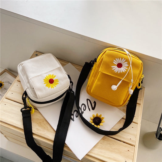 Small Daisy Canvas Small Bag Girl New Ins Japanese Messenger Bag Literary Student Shoulder Mobile Phone Bag