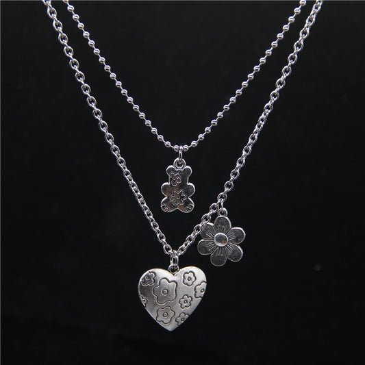 Punk Rock Flower Bear Heart Pendant Necklace Hip Hop Fashion Jewelry Cool For Women Girl Gifts Accessories Party Nightclub Gifts