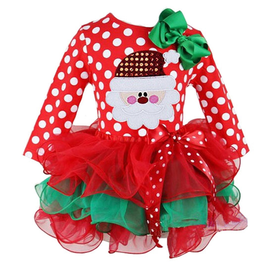 New Year Baby Girl Christmas Dress Girl's Merry Christmas Dress Children Kids Cotton Dot Dress Girls Tutu Santa Clus Costume