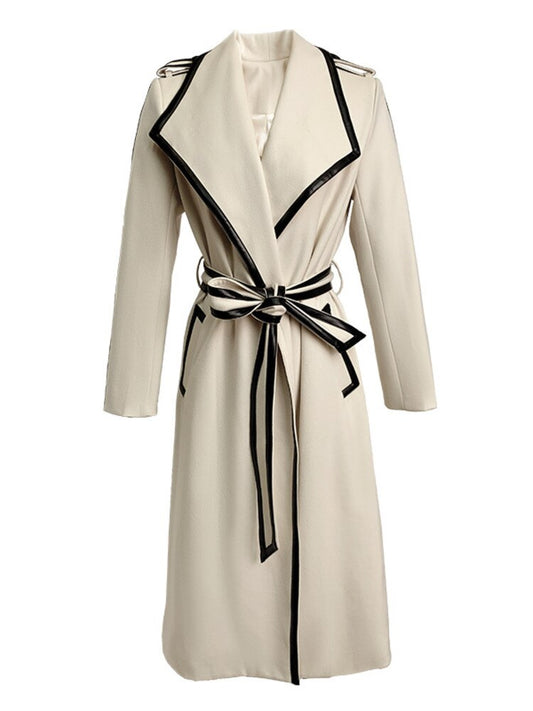 Winter New French Woolen Suit Long Coat Lapel Contrast Waist Wool Coat Women