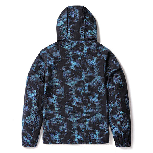 Spring And Fall Trench Coat Men Hooded Long Sleeve Full Print Sports Casual Thin Jacket