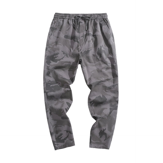 Camouflage overalls: Men's new fashion, washable, versatile, drawstring belt, flat mouth casual pants