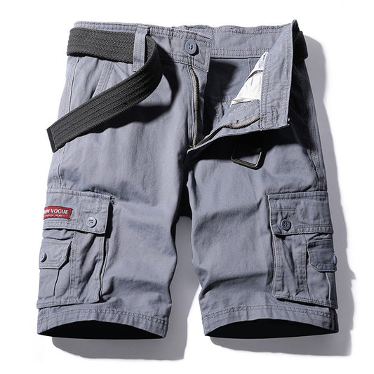 Work Shorts men's casual pure cotton washing sports five point multi bag pants