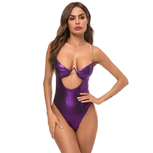spring women's new sexy stitching bodysuit with steel ring women's four colors