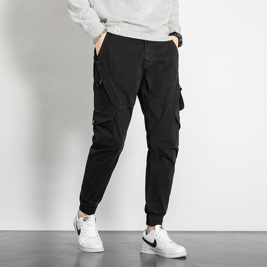 Casual pants: Men's new work clothes trend: solid color Multi Pocket legged work clothes pants