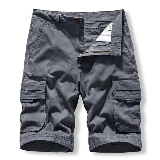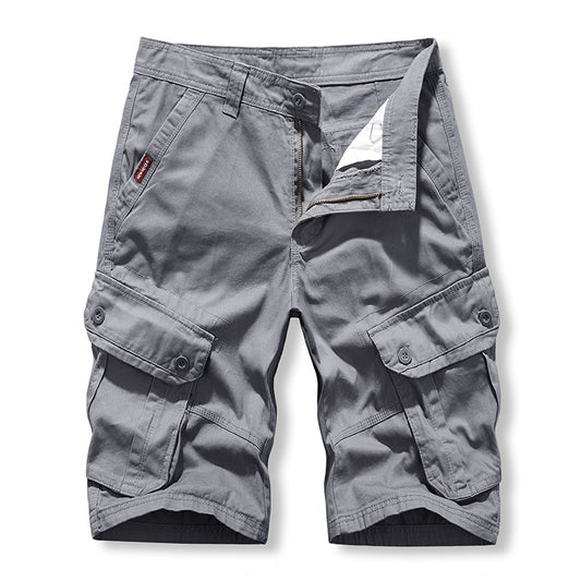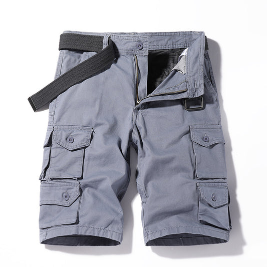 Work Shorts men's new washing stripe Multi Pocket casual pants pure cotton six point sports men's pants