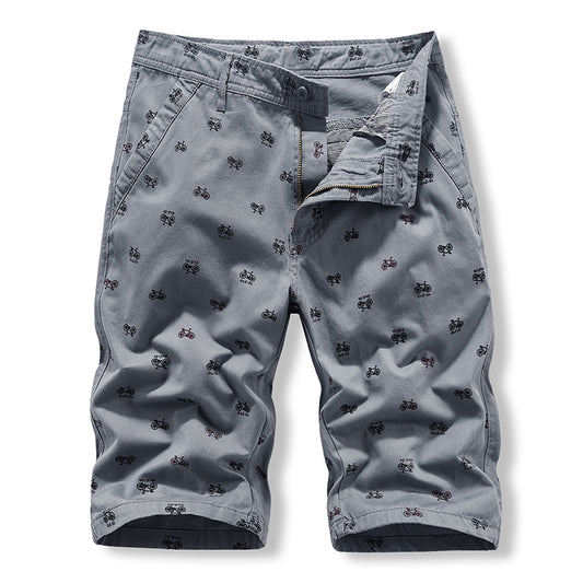 Work wear shorts men's fashion running water washing stripe Multi Pocket casual pants pure cotton five point sports men's pants