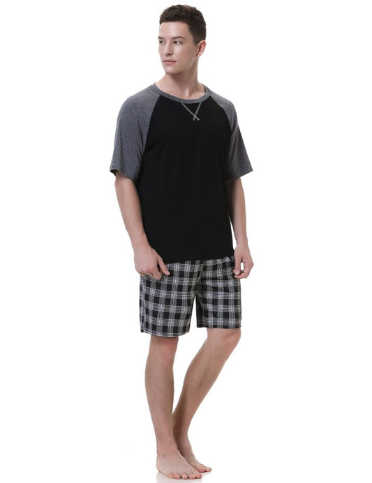 Men's Cotton Raglan Sleeve Contrast Short Sleeve Shorts Pajama Set
