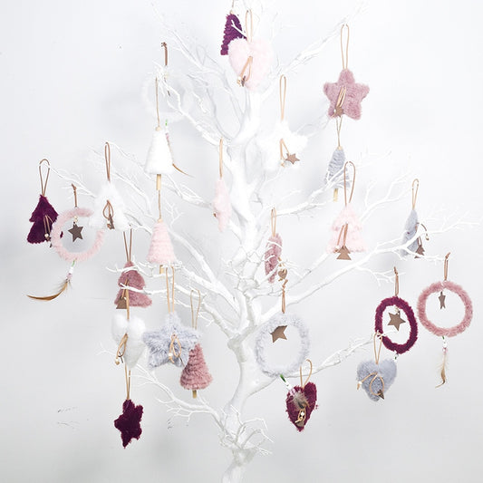 5pcs/set Creative Plush Christmas Tree Hanging Pendant Pink White Heart Star Feather Ornament Christmas Decoration for Home Xmas