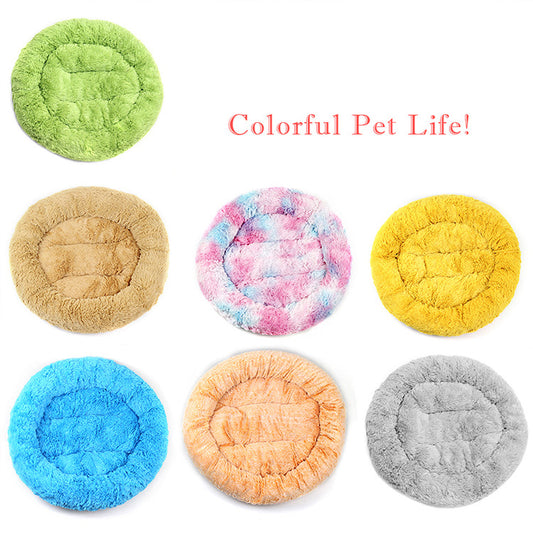 55*55 cm Colorful Dog Kennel Cat Kennel Pet Bed Round Plush Winter Dog Pad Cat Pad Small And Medium Dogs