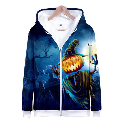 Halloween Long Hoodie Women Men Zipper Casual Sweatshirt