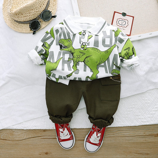 Children's Clothing Handsome Boy Suit Long Sleeve Full Print Animal New Trousers Two-Piece Korean Style
