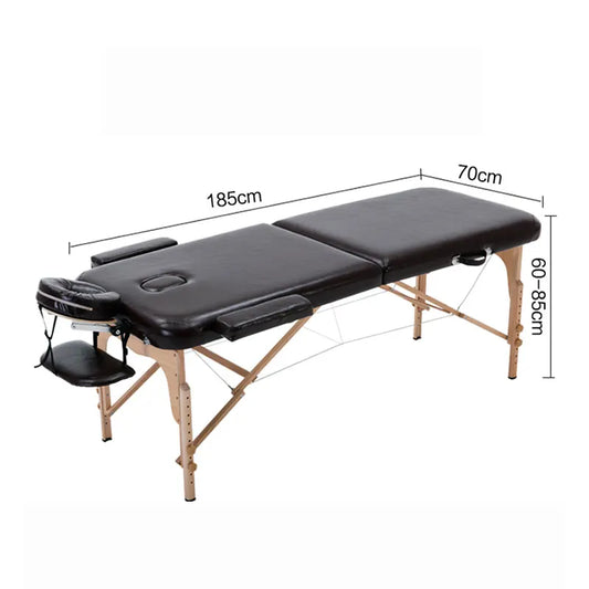 Massage Table Portable 2 Section Folding Couch Bed Lightweight Beauty Salon Tattoo Therapy Wooden Frame 70 cm width -Black