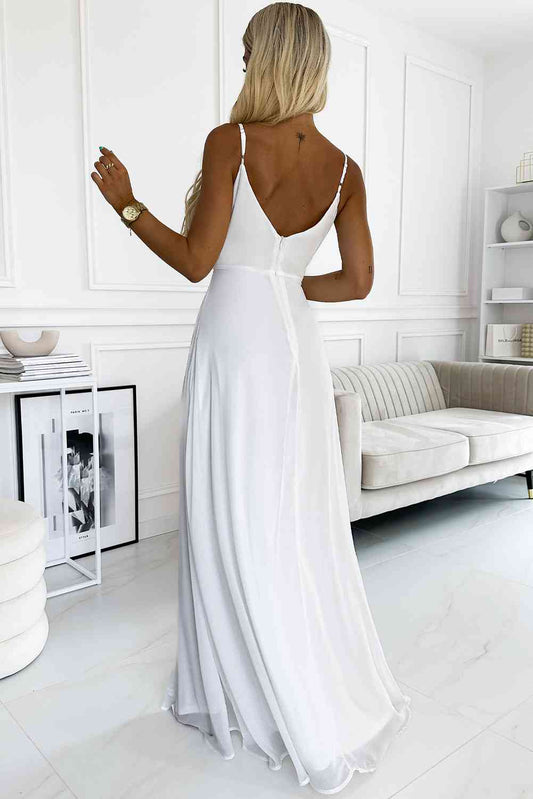 Swiss Dot Surplice Smocked Ruffle Hem Dress
