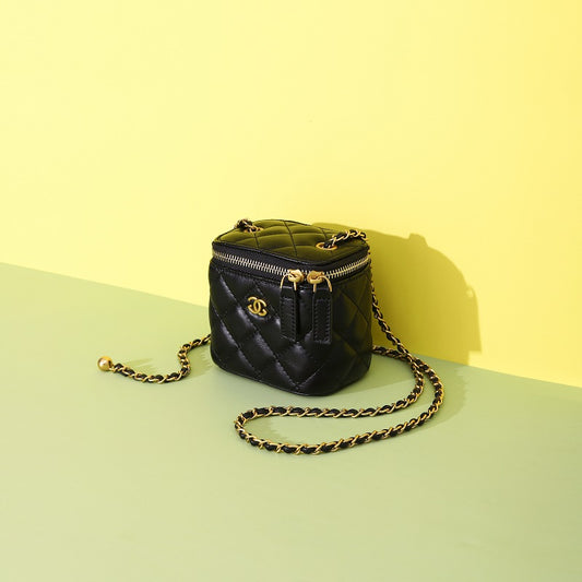 专柜名牌真皮盒子包2024新款包包女款化妆包小香风金球迷你口红包