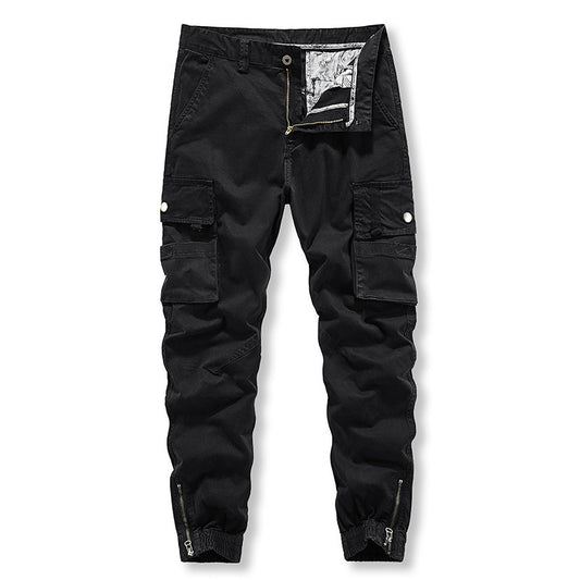 Washed solid color overalls, men's fashion, versatile, zipper pants, Multi Pocket sports and leisure pants