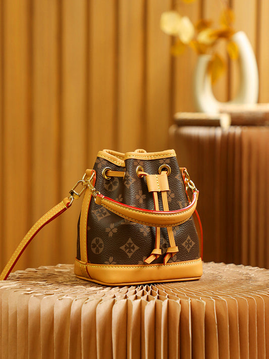 香港专区2024新款女包潮奢侈品老花真皮拼色斜挎单肩迷你水桶包