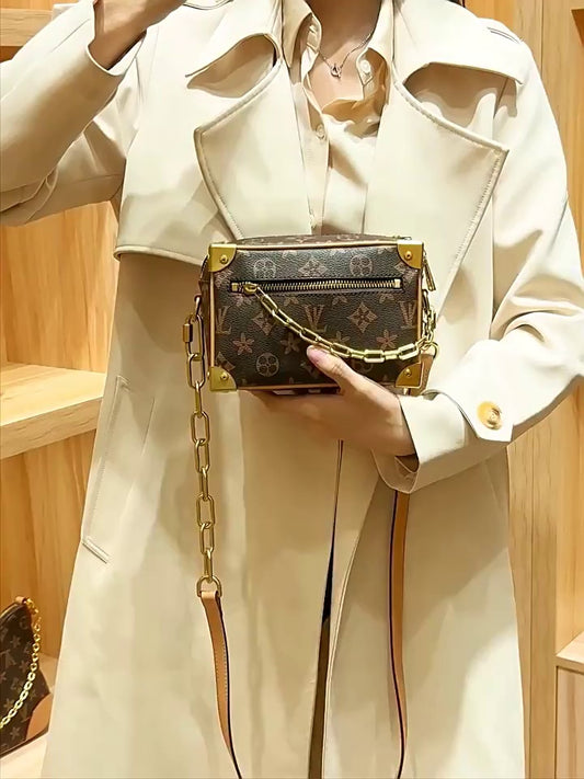 香港lv2024新款奢侈品女包真皮百搭时尚单肩斜挎老花盒子八角包