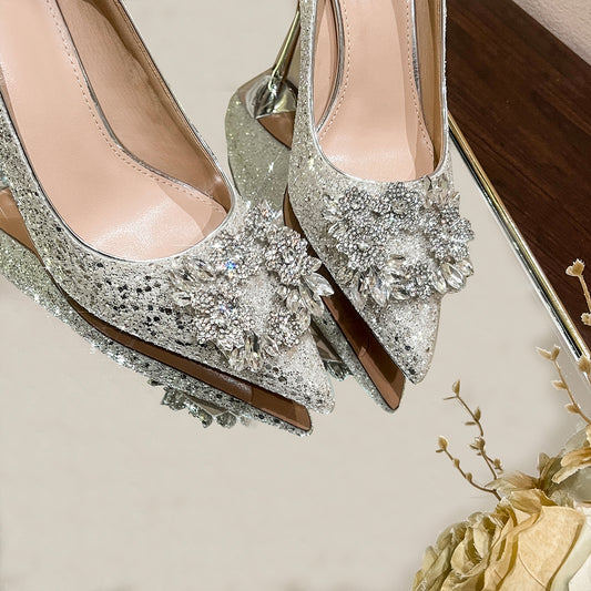 婚鞋秀禾婚纱两穿水晶鞋新娘鞋女香槟色金色高跟鞋不累脚水钻2024
