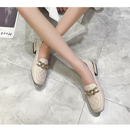 真皮2024夏季小皮鞋女鞋子新款粗跟乐福鞋英伦风黑平底单鞋豆豆鞋
