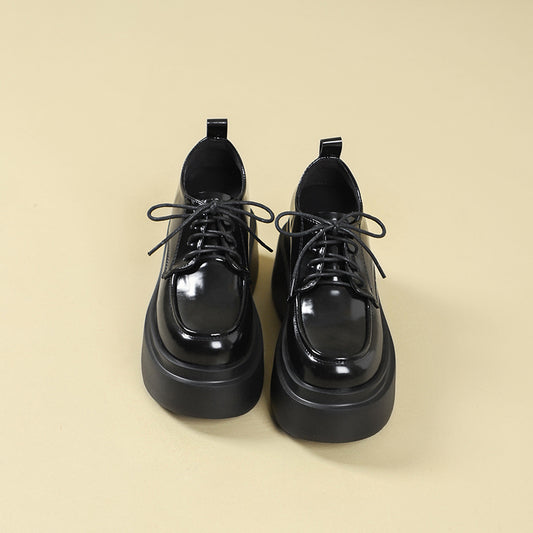 12cm内增高女鞋松糕厚底乐福鞋黑色jk单鞋英伦小皮鞋超高跟增高鞋