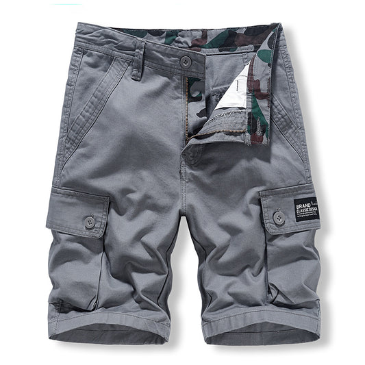 Work Shorts men's casual pure cotton washing sports five point multi bag pants